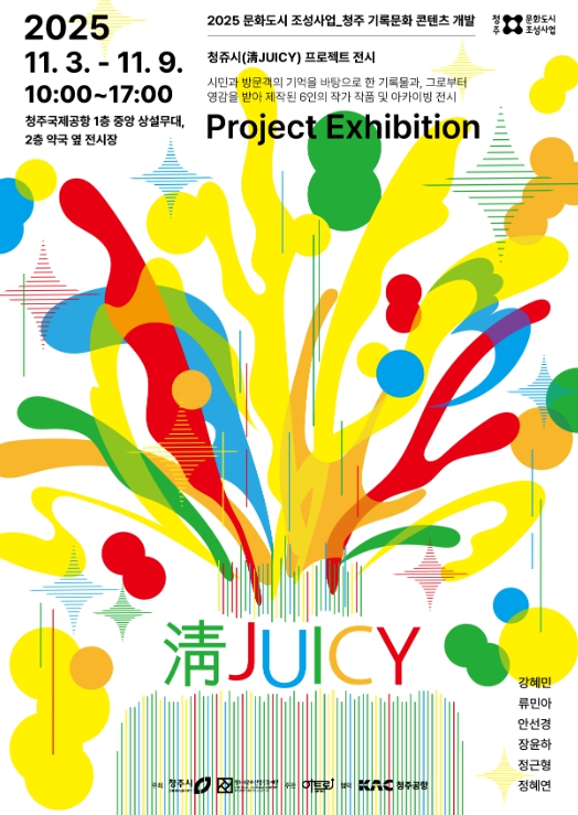 [뉴스다컴] 청주시와 청주시문화산업진흥재단은 오는 11월 3일부터 9일까지 청주국제공항에서 지역 예술인 작품 전시회인 ‘청쥬시(淸JUICY) 프로젝트’를 진행한다고 전했다.