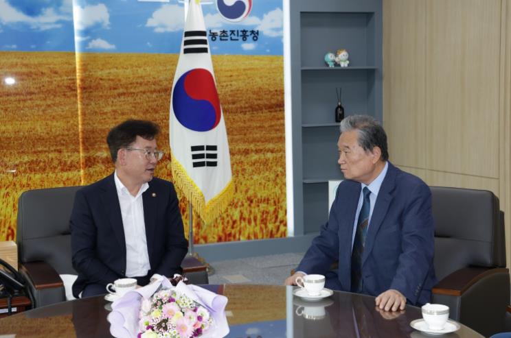 ▲ 이승돈 농촌진흥청장과 정재택 종축장이전개발추진위원장 회담 |