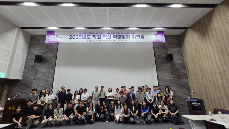 [뉴스다컴] 충북도는 17일 청주오스코에서 공무원 80여 명이 참여한 가운데 '2025년 직원 혁신 역량강화 워크숍'을 개최했다고 밝혔다.