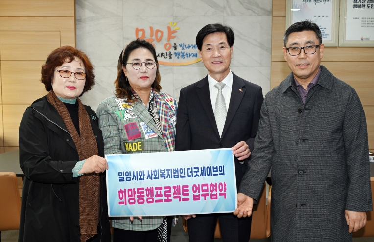 [뉴스다컴] 경남 밀양시는 5일 시장실에서 사회복지법인 더 굿 세이브(회장 박영태)와 드림스타트 아동 30여 명을 대상으로 1년간 도시락 및 맞춤형 서비스 지원을 위한 ‘희망동행 프로젝트’ 업무협약을 체결했다고 밝혔다.
