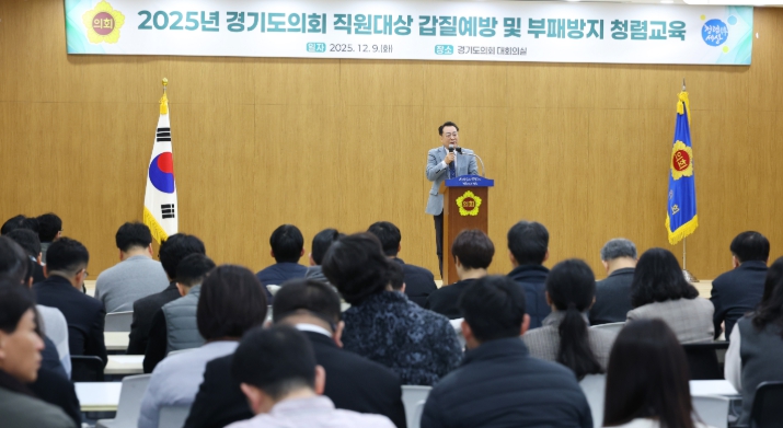 [뉴스다컴] 경기도의회는 9일 오전 의회 대회의실에서 전 직원을 대상으로 ‘갑질예방 및 부패방지 청렴교육’을 실시했다.