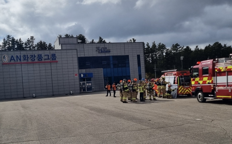[뉴스다컴] 영동소방서장는 24일 황간면에 위치한 AN화장품 공장에서 가상 화재상황 부여에 따른 충북형 화재진압 현장지휘 전술 훈련을 실시했다.