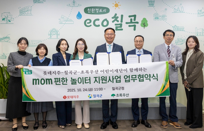 [뉴스다컴] 지난 24일, 칠곡군은 롯데그룹과 초록우산 어린이재단이 함께하는 ‘mom 편한 놀이터 조성을 위한 업무협약을 체결했다.