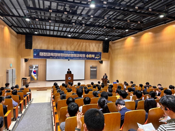 [뉴스다컴] 대전교육정보원 정보영재교육원은 10월 17일 본관 다목적 강당에서 2025년 수료식을 열고 소프트웨어(SW), 로봇, 인공지능(AI) 분야의 정보 영재 교육과정을 마친 수료생들에게 수료증을 수여했다.