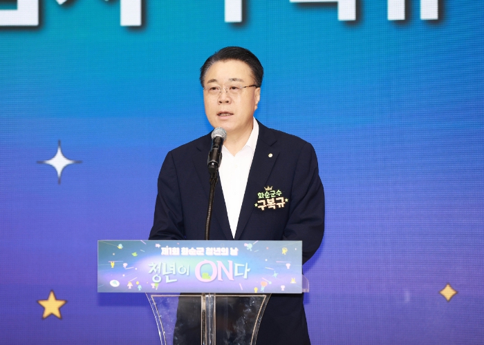 ▲ '제1회 화순군 청년의 날' 행사에서 구복규 화순군수의 기념사 모습 |
