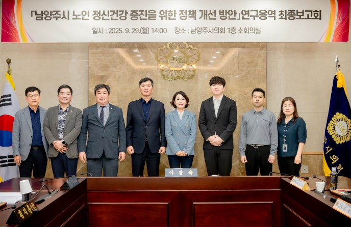 [뉴스다컴] 남양주시의회는 29일 남양주시의회 소회의실에서 의원 연구단체인 ‘남양주시 노인 정신건강 증진을 위한 정책 개선방안 연구모임’의 연구용역 최종보고회를 개최했다.