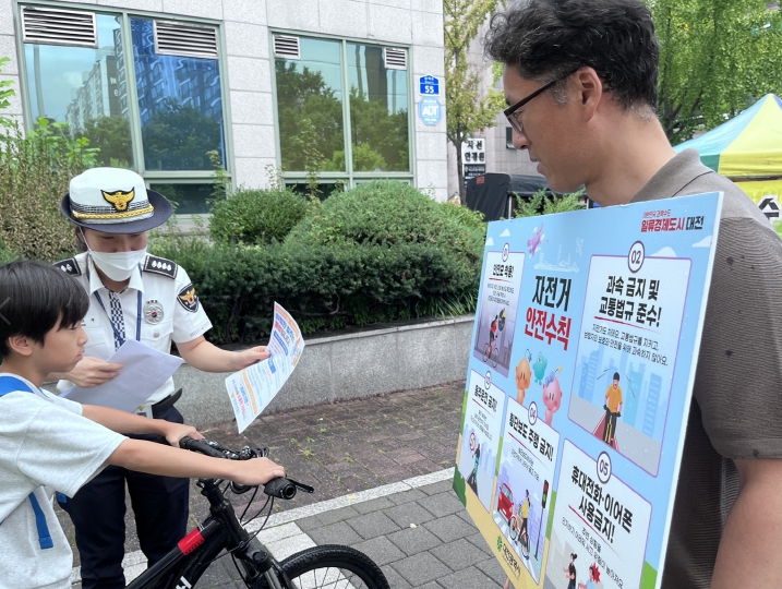 [뉴스다컴] 대전시는 최근 픽시자전거 이용이 유행하면서 교통사고 위험이 증가함에 따라 시민 안전 확보를 위해 9월 24일 둔산동 크로바네거리 일원에서 ‘픽시자전거 합동단속 및 교통안전 캠페인’을 실시했다.