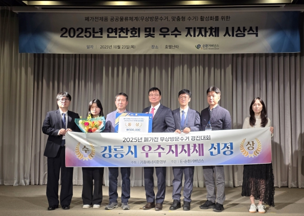 [뉴스다컴] 강릉시는 지난 6월 세계 환경의 날을 맞이하여 자원순환 및 재활용 활성화에 기여한 공로로 ‘환경보전 유공 국무총리 단체표창’을 수상하는데 이어, 23일 기후에너지환경부가 주최하는 '2025년 폐가전 무상수거처리 전국 지자체 경진대회'에서 ‘동상’을 수상하여 기후에너지환경부장관 단체표창을 받는 쾌거를 이뤘다.