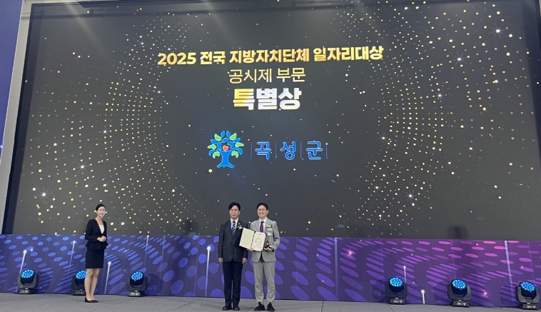 [뉴스다컴] 전남 곡성군이 지난 30일 충북 청주 오스코 컨벤션센터에서 열린 고용노동부 주관 전국 지방자치단체 일자리 대상 시상식에서 일자리 공시제 부문 특별상을 받는 영예를 안았다.