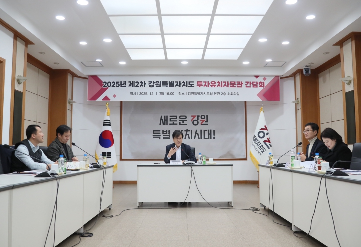 [뉴스다컴] 강원특별자치도는 12월 1일 도청 본관에서 도내 투자유치 활성화를 위한 전략을 논의하고자 '2025년 제2차 투자유치자문관 간담회'를 개최했다고 밝혔다.