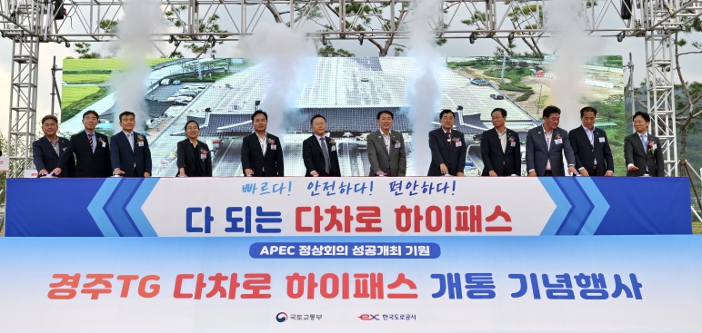 [뉴스다컴] 2025년 APEC 정상회의 성공개최를 기원하는 의미를 담아 한국도로공사는 경부고속도로 경주요금소 다차로 하이패스 개통식을 개최했다.