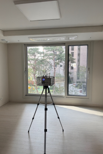 | ▲ 신축 아파트 대상으로 실내공기질 오염도 검사 실시하는 모습 |
