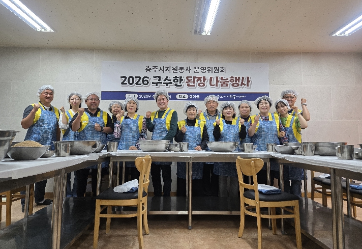 [뉴스다컴] 충주시자원봉사운영위원회(위원장 박영찬)는 지난 17일, 충주 항아골(대표 김명숙)에서 지역 내 소외계층의 건강한 식생활 지원을 위한 ‘2026 구수한 된장 나눔’ 행사를 가졌다.
