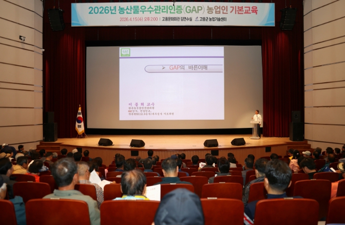 [뉴스다컴] 고흥군은 지난 15일 고흥문화회관 김연수실에서 지역 농업인 344명이 참석한 가운데 2026년 농산물우수관리(GAP) 인증 농업인 기본교육을 실시했다고 밝혔다.