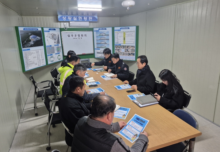 [뉴스다컴] 장흥소방서(서장 문병운)는 1월 19일 오후 2시 30분, 관내 대형 공사장인 정남진 스포츠타운 공사 현장을 방문하여 관계기관 간담회를 개최하고 겨울철 화재 및 안전사고 예방을 위한 협력체계를 강화했다고 밝혔다.