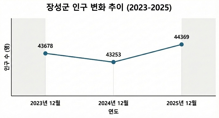| ▲ 지난해 12월 기준 장성군의 인구가 1년 전인 2024년 12월보다 1116명 증가한 것으로 나타났다. |