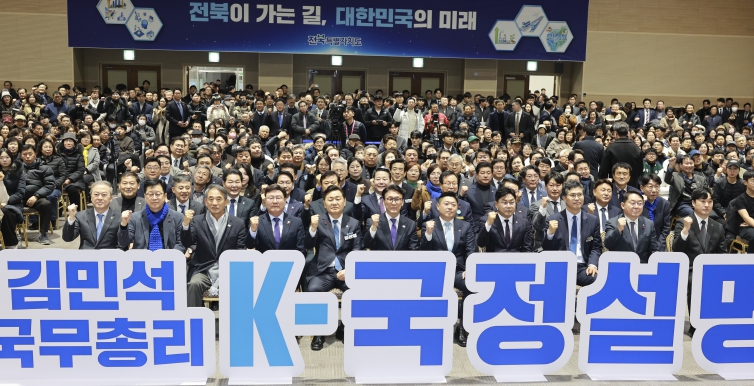[뉴스다컴] 김민석 국무총리가 19일 전북대학교 JBNU컨벤션센터에서 열린 ‘K-국정설명회’에 참석해 전북을 ‘미래산업의 테스트베드’로 육성하겠다는 정부의 의지를 재확인했다. 국민주권정부 출범 6개월을 맞아 전국을 순회하며 진행되는 이번 행사에는 도민 500여 명이 참석해 정부와 직접 소통하는 시간을 가졌다.