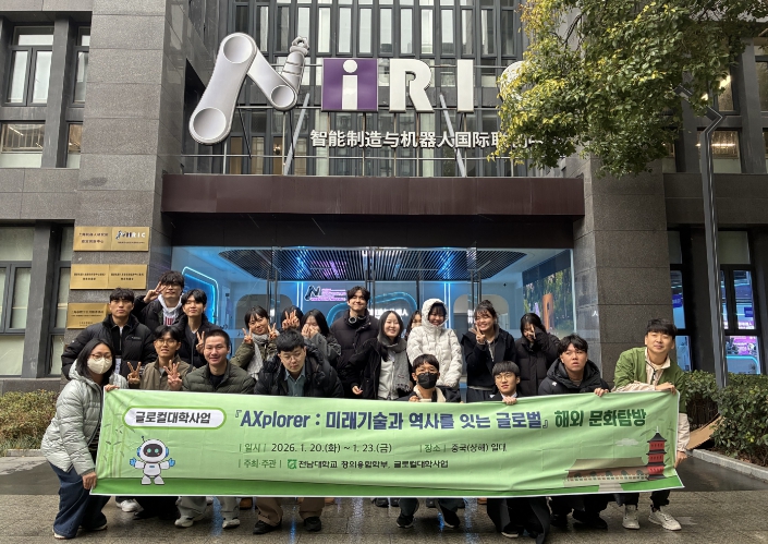 [뉴스다컴] 전남대학교 창의융합학부(학부장 이인혜)는 ‘글로컬대학사업’의 일환으로 지난 1월 20일부터 23일까지 3박 4일간, 중국 상해와 항주 일대에서 무전공 학생들을 위한 글로벌 진로 탐방 프로그램 'AXplorer: 미래기술과 역사를 잇는 글로벌 탐방'을 성황리에 마쳤다.