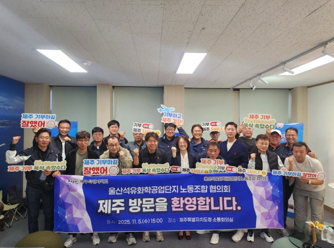 [뉴스다컴] 제주특별자치도는 울산석유화학공업단지 노동조합협의회(의장 우영석)가 5일 제주도청을 방문해 고향사랑기부금을 전달했다고 밝혔다.