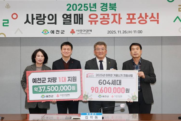 [뉴스다컴] 예천군은 26일 오전, 경북사회복지공동모금회(회장 전우헌)가 주최하는 ‘2025 경상북도 찾아가는 이웃돕기 유공자 포상식’이 예천군청에서 열렸다고 밝혔다.