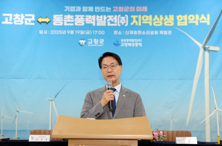 오희종 동촌풍력발전㈜ 대표도 “고창군과 함께 지역과 기업이 동반 성장하는 모범적 사례를 만들겠다”며 “주민 참여와 지역사회 기여를 적극 실천하겠다”고 말했다.