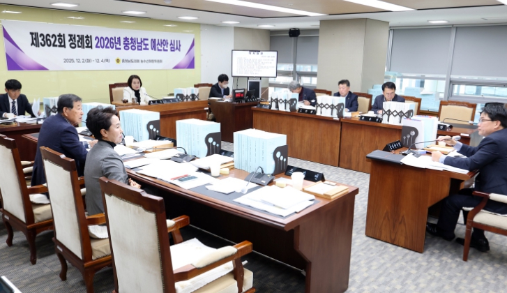 [뉴스다컴] 충남도의회 농수산해양위원회는 2일 제362회 정례회 2차 회의에서 충남도 농축산국 소관 2025년도 제3회 추가경정예산안, 2026년 본예산안, 조례 제‧개정안, 동의안 등을 심사했다.