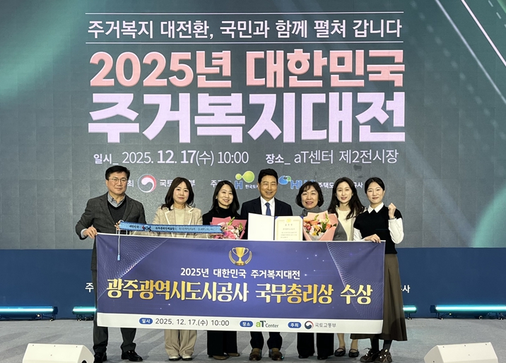 [뉴스다컴] 광주도시공사(사장 김승남)는 17일 서울 양재 aT센터에서 열린 ‘2025 대한민국 주거복지대전’에서 주거복지 향상 및 서민 주거안정에 기여한 공로를 인정받아 국무총리 표창을 수상했다고 밝혔다.